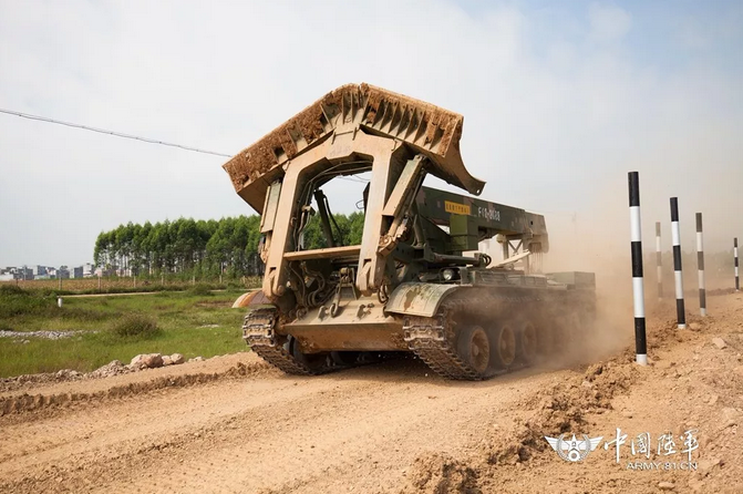 集訓官兵駕駛戰車快速通過車轍橋